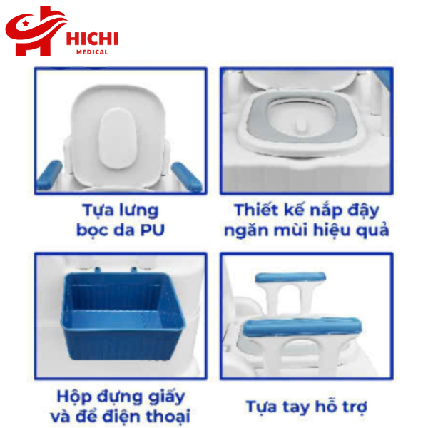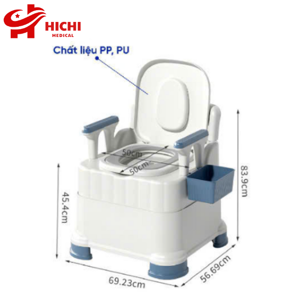 - Tựa tay mở rộng: Bô vệ sinh di động có thiết kế tựa tay mở rộng, tăng công năng sử dụng không gian ngồi, mở rộng hai bên, chỗ ngồi thoải mái hơn.