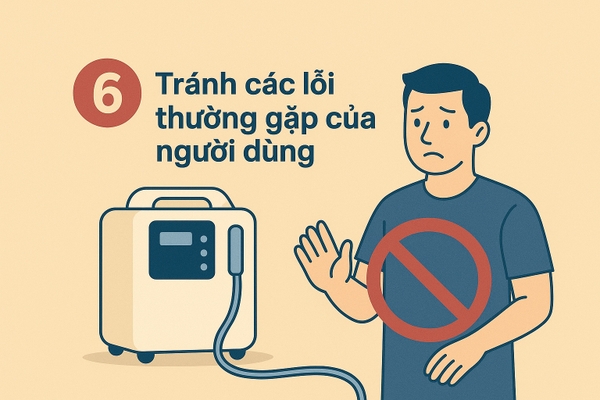 - Nếu máy báo lỗi hoặc oxy đầu ra yếu, ngừng sử dụng và liên hệ trung tâm bảo hành.