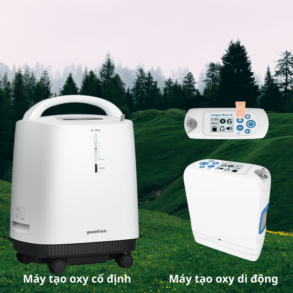 Khuyến nghị: máy tạo oxy 1–3 lít, nhỏ gọn, dễ di chuyển.