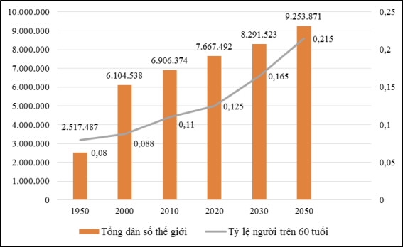 Hình 1. Xu hướng già hóa dân số trên thế giới