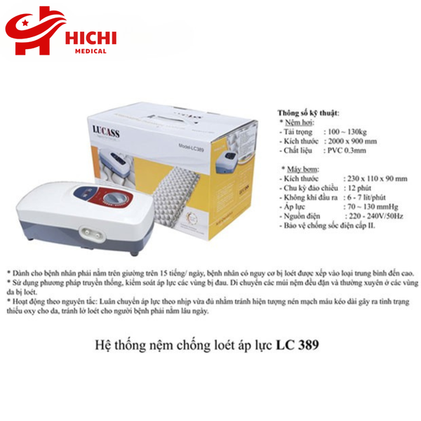 -Đệm hơi chống loét LC-389 là một sản phẩm được dùng nhiều trong y tế,trong việc chăm sóc sức khỏe của người bệnh,người già cao tuổi hay những bệnh nhân bị liệt nằm điều trị lâu ngày bị triệu chứng bedsore ( triệu chứng thối loét vì nằm liệt giường): Những bệnh nhân gặp phải triệu chứng này chỉ cần nằm nguyên một tư thế trong khoảng từ 1 - 2 tiếng sẽ khiến cơ thể đỏ ửng lên và nếu tiếp tục duy trì tình trạng không thay đổi tư thế trong 1 thời gian dài sẽ dẫn đến việc da bệnh nhân bị lở loét.