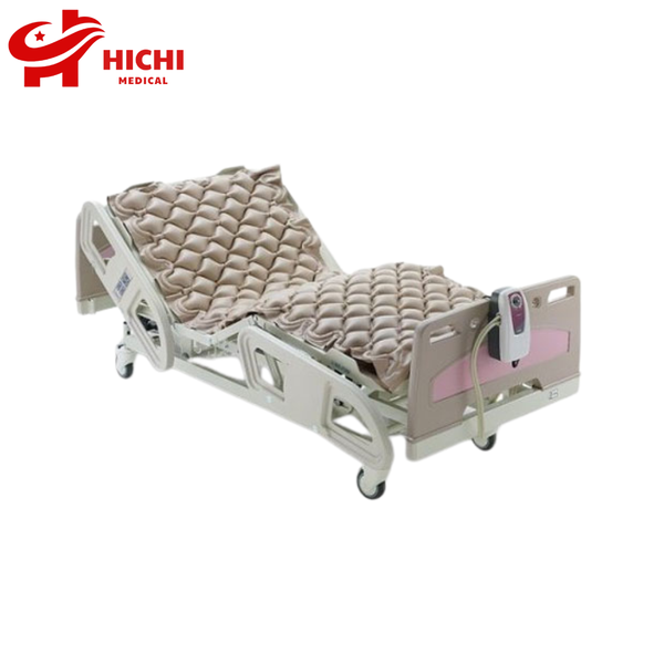 | Các chức năng | -Chạy bằng điện -Chất liệu: PVC 0.3mm -Thời gian chu kỳ: 6 phút -Không khí đầu ra: 6 - 7 lít/ phút -Áp lực: 70 - 130 mmHg -Nguồn cấp: 220 - 240 Volt/ 110V, 60Hz -Giảm áp lực lên da,chống loét cho người bệnh |