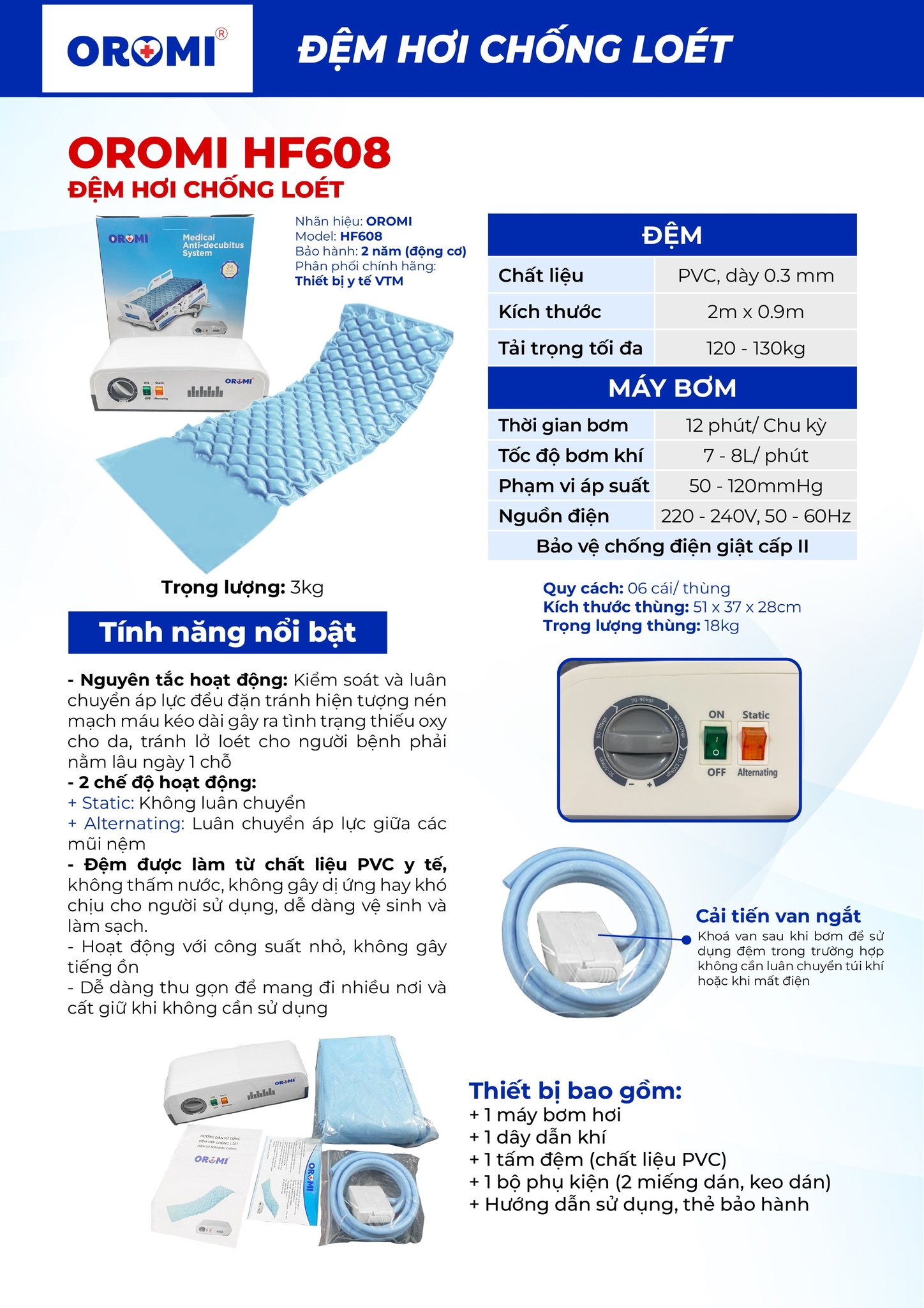 *Lưu ý: Đây là sản phẩm đệm hơi chống loét cần cắm điện liên tục và lưu giữ máy bơm xả khí xen kẽ (1 ống bơm 1 ống xả - 2 ống không bơm cùng lúc) luân phiên đảo chiều trong suốt quá trình nằm.