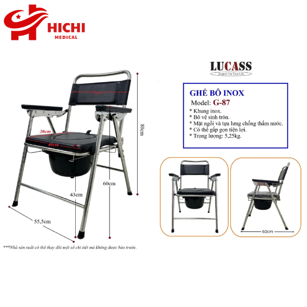 - Ghế bô vệ sinh Lucass G87 thuận tiện cho việc chăm sóc người lớn tuổi, người bị bệnh hạn chế đi lại. Ghế bô không bánh xe mặt nệm Lucass G87 là một sản phẩm có giá thành phù hợp với kinh tế các gia đình hiện nay. kết hợp giữa thiết kế bền bỉ và tính năng tiện ích, giúp nâng cao sự thoải mái và hỗ trợ trong việc vệ sinh cá nhân.