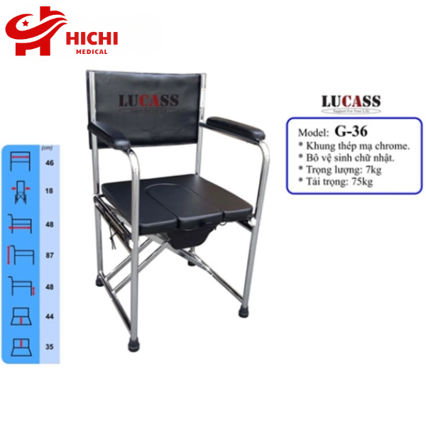 - Ghế bô vệ sinh mặt nệm Lucass G36 là thiết bị dùng để cho người ốm nặng, người cao tuổi đi lại khó khăn, người tàn tật hay người bị liệt đi vệ sinh. Ghế thiết kế vững chắc, đệm êm không thấm nước, tiện dụng, bảo đảm vệ sinh.
