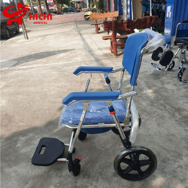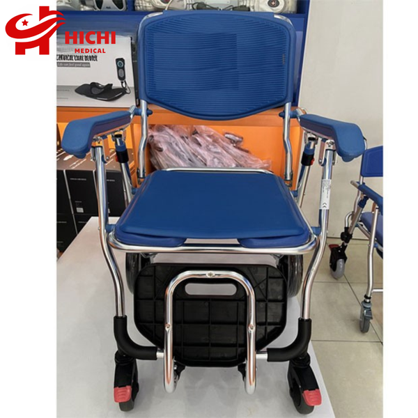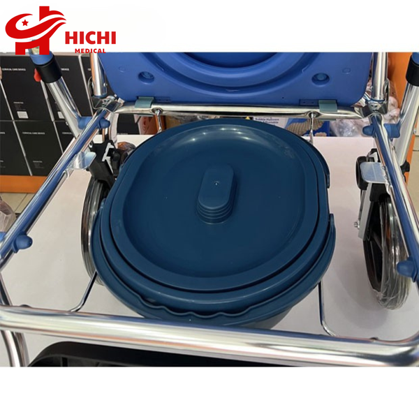 - Đây là một chiếc ghế bô đa năng, có thể đi vệ sinh trực tiếp xuống bồn cầu và dùng nước xả rửa, dùng làm xe lăn khi cần di chuyển