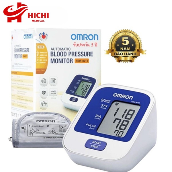 - Máy đo huyết áp Omron HEM-8712 giúp kiểm tra chỉ số huyết áp, nhịp tim cơ thể mỗi ngày
