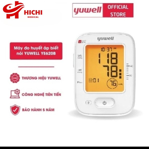 Yuwell 620B có hướng dẫn bằng giọng nói tiếng Việt, dễ nghe, dễ hiểu, giúp người dùng đo huyết áp dễ dàng, chính xác.