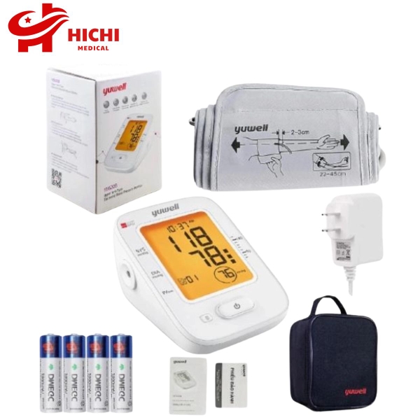 Máy đo huyết áp bắp tay Yuwell 620B đi kèm 4 pin AA và adapter để người dùng có thể sử dụng điện 220V, thay thế cho việc dùng pin, giúp máy hoạt động ổn định hơn và tiết kiệm chi phí mua pin thay thế.