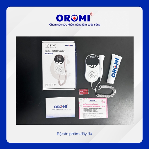 - Thiết bị gồm: Máy đo tim thai, đầu dò, pin AA, gel