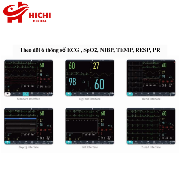 Màn hình màu TFT 12.1 inch sắc nét – hiển thị rõ ràng các thông số sinh tồn