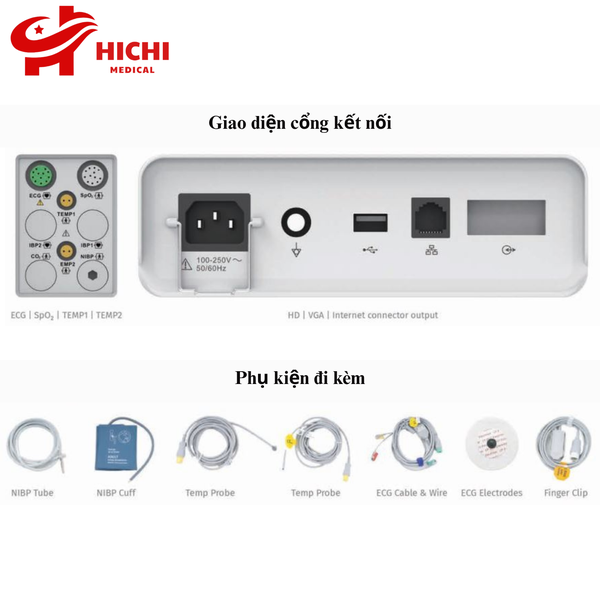 Cảm biến SpO2, dây đo ECG, vòng đo huyết áp