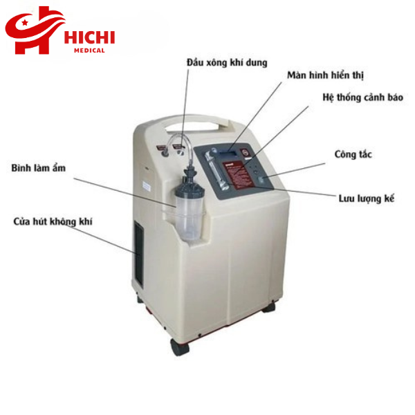 - Hệ thống đèn cảnh báo: Giúp cảnh báo khi áp suất quá cao hoặc quá thấp, chất lượng oxy đầu ra không đạt tiêu chuẩn, sự cố..