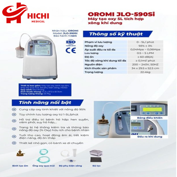 + Máy tạo oxy JLO 590Si là sản phẩm chuyên dụng dùng cho y tế hỗ trợ điều trị bệnh nhân khó thở, mắc các chứng bệnh về phổi cấp và mãn tính