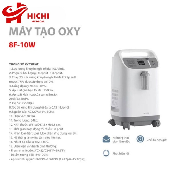 Yuwell là thương hiệu máy tạo oxy y tế cao cấp đến từ Trung Quốc, nổi bật với chất lượng ổn định và được tin dùng tại nhiều quốc gia, trong đó có Việt Nam. Trong đó, model Yuwell 8F-10W là một trong những dòng máy công suất lớn tiêu biểu, chuyên dụng cho bệnh viện, phòng khám và chăm sóc tại nhà cho bệnh nhân nặng.