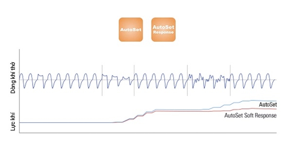 - Tính năng chờ (Auto Ramp) sẽ tự động nhận biết lúc nào người dùng vào giấc ngủ, lúc đó áp lực khí mới tăng dần đến mức áp lực điều trị.