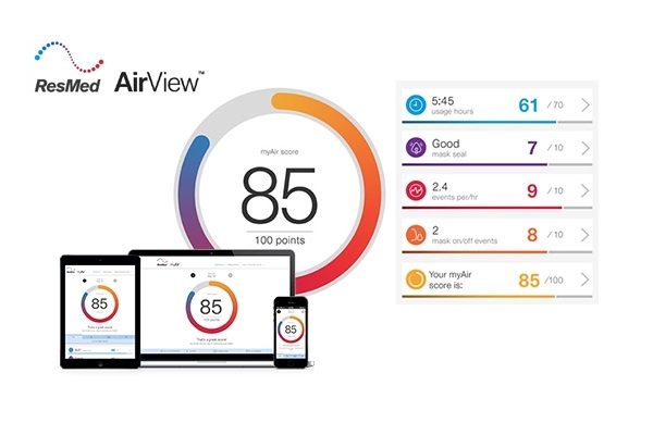 - Máy AirSense 10 Autoset còn được tích hợp kết nối mạng, giúp máy kết nối với hệ thống đám mây AirView của hãng ResMed. Bác sĩ hoặc kỹ thuật viên có thể theo dõi quá trình điều trị, thực hiện điều chỉnh cần thiết từ xa qua Internet. Người thân cũng có thể theo dõi hiệu quả sử dụng từ xa trên ứng dụng MyAir.
