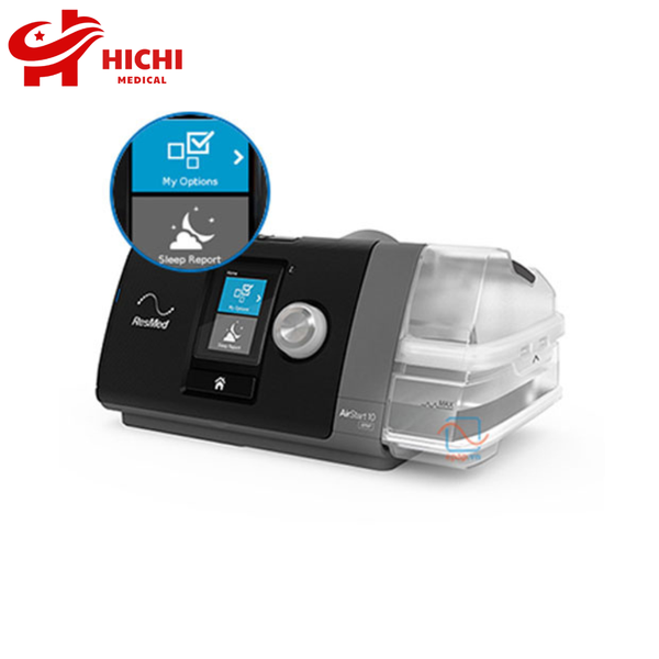 - Máy trợ thở Resmed Airstart 10 Apap là máy trợ thở một chiều tự động (Auto Cpap) với thuật toán phát hiện các sự kiện trong lúc ngủ: ngáy, đường thở bị hẹp, đường thở bị tắc nghẽn. Tùy vào mức độ của các sự kiện, máy sẽ tự điều chỉnh áp lực khí thổi vào đường thở để mở thông đường thở, giúp người sử dụng hô hấp bình thường và có giấc ngủ sâu.