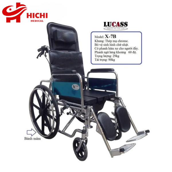 Xe Lăn Đa Năng Lucass X-7B là bản nâng cấp của dòng xe lăn X7, về chức năng hoàn toàn giống xe lăn X7 tuy nhiên có thêm phần thay đổi đó là thay vì bánh căm trên dòng X-7 thì dòng xe lăn đa năng X7B được làm bằng bánh đúc góp phần sang trọng và chắc chăn cho chiếc xe lăn của bạn.