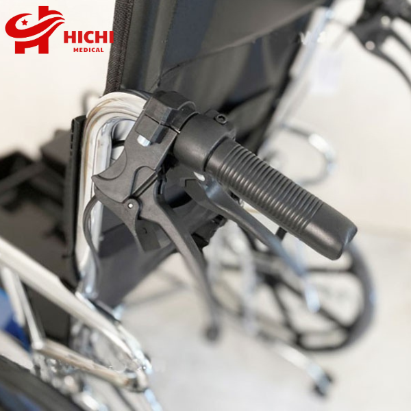 - Hai bên tay đẩy có 2 hệ thống phanh: Phanh bên ngoài là phanh hãm cho xe dừng lại, phanh bên trong là phanh cho xe ngả ra hoặc nâng lên để ngồi. Thao tác ngả nằm và ngồi dậy đơn giản, chỉ cần bóp phanh trong và hạ tay đẩy xuống/nâng tay đẩy lên là được.