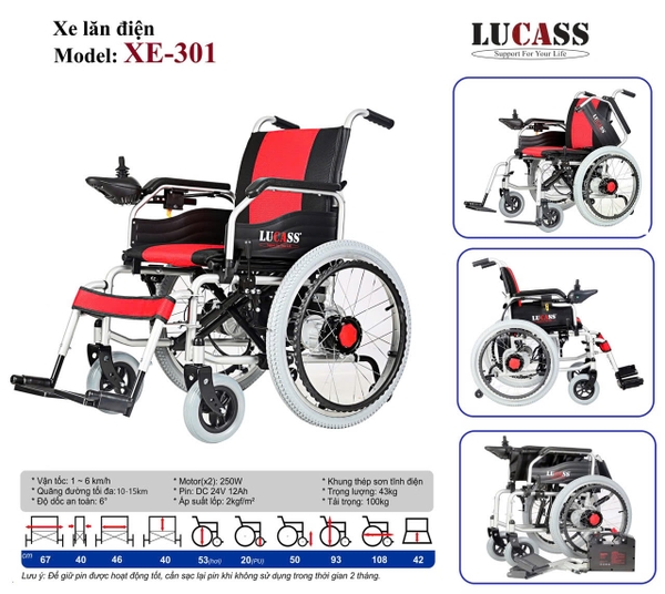 Xe lăn điện Lucass X-301 là dòng xe lăn điện thuộc thương hiệu Lucass được gia công trên dây chuyên công nghệ Mỹ, chất lượng gia công chắc chắn bền bỉ, động cơ vần hành dễ dàng êm ái, phù hợp cho người già, người bệnh, người bị tai biến, giúp cho quá trình đi lại của người bệnh thuận tiện hơn trong cuộc sống. Hiện nay dòng xe lăn điện X-301 là dòng xe lăn được tin cậy nhất hiện nay do những ưu điểm vốn có của xe như di chuyển dễ dàng vận hành êm ai, điều khiển dễ dàng ai cũng có thể ngồi lên và vận hành di chuyển xe một cách linh hoạt và dễ dàng. CHúng ta cùng tìm hiểu một vài đặc điểm đáng chú ý của dòng xe lăn điện XE-301.