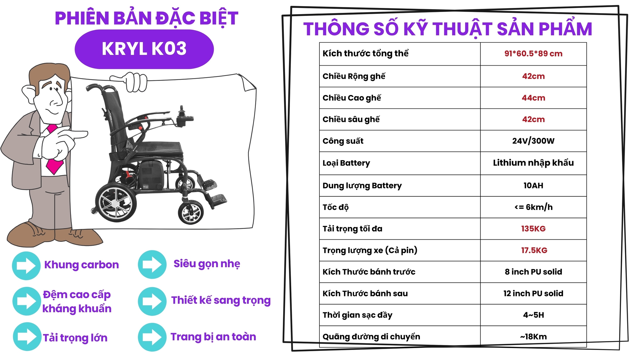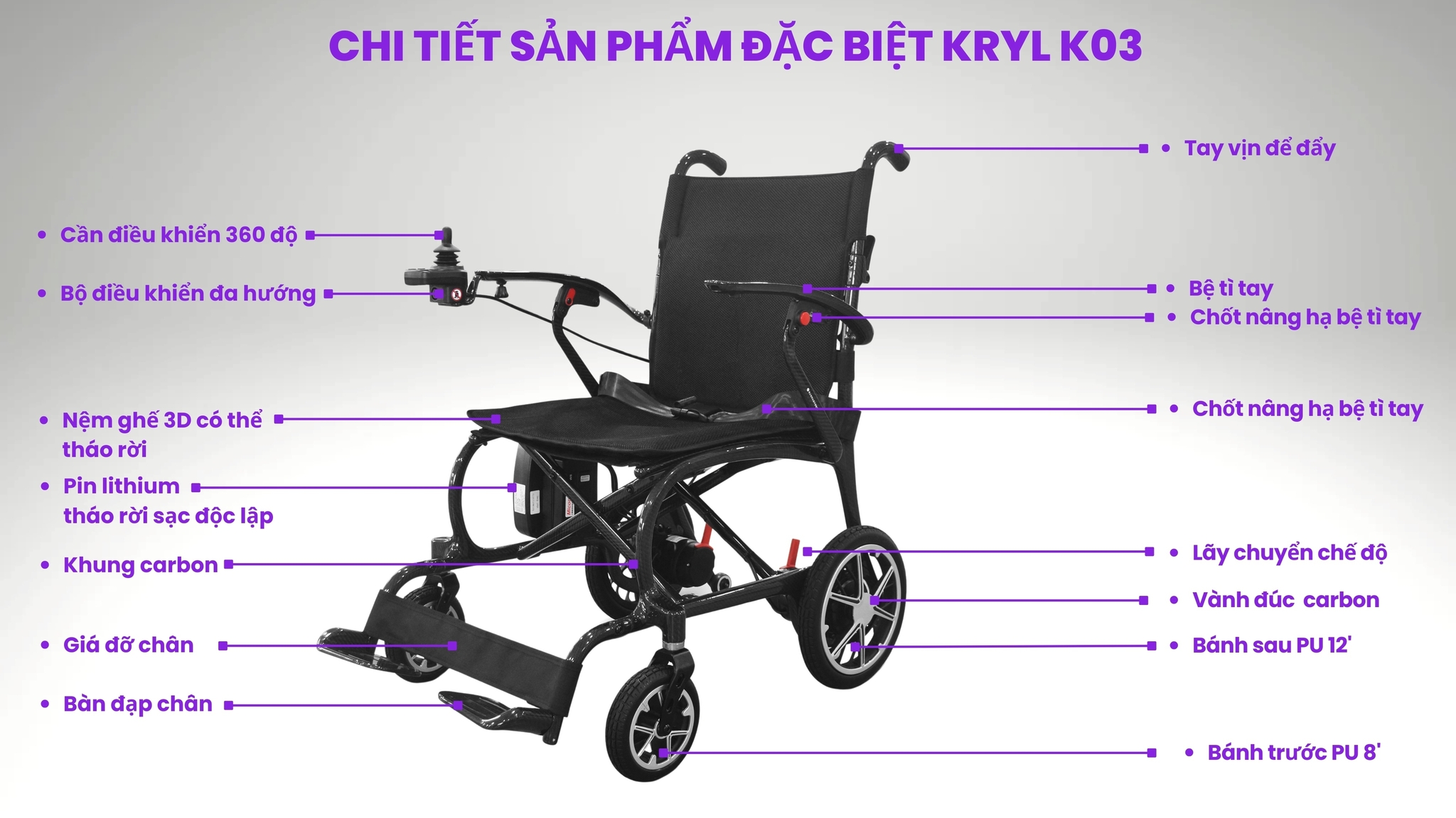*** Giới thiệu xe lăn điện phiên bản Đặc Biệt khung carbon siêu nhẹ 13kg Kryl K03***