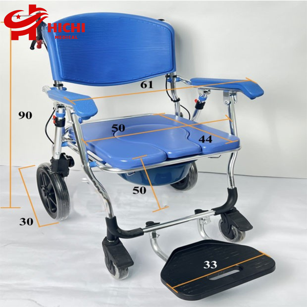 - Đây là một chiếc xe lăn kiêm ghế bô, xe tắm, xe ngồi sinh hoạt hàng ngày cao cấp có tính năng gấp gọn và kéo đi thuận tiện. Khung được làm bằng hợp kim nhôm siêu nhẹ, chắc chắn, sáng bóng và tính mỹ thuật cao, không bị han gỉ.